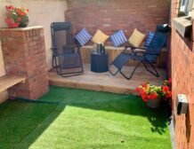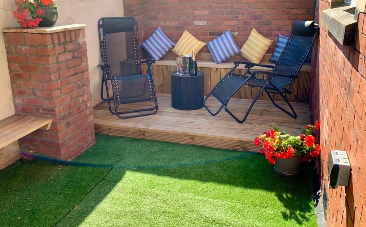 - Rear enclosed courtyard with Astroturf and furniture