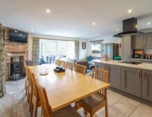 Here you can settle in for an evening of relaxation in the open-plan living space, fitted with state-of-the-art kitchen appliances, a sociable family dining table and plush furnishings in front of a toasty woodburning stove and Smart TV.