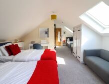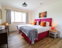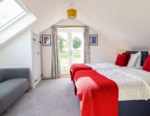- Four bedrooms: 1 x king-size (zip/link can be twin on request) with en-suite bath, shower, basin and WC, 1 x king-size and 1 single (family room) with en-suite walk-in shower, basin, heated towel rail and WC, 2 x ground-floor king-size (zip/link can be twin on request) and single day bed with en-suite walk-in shower, basin and WC