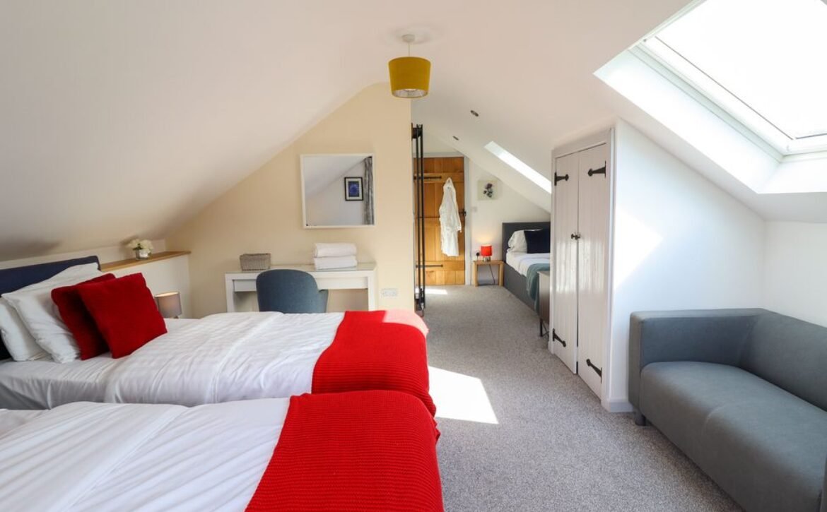 The ground floor houses two attractive king-size rooms, both with zip/link features and private en-suite shower rooms, whilst two more bedrooms await on the first floor, resting beneath airy sloped ceilings are two further zip/link king-sizes, one with a lavish en-suite bathroom, and the other with a refreshing en-suite shower room.