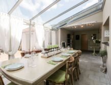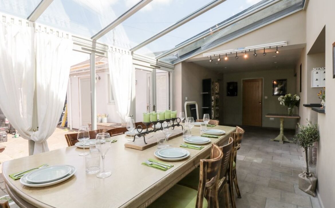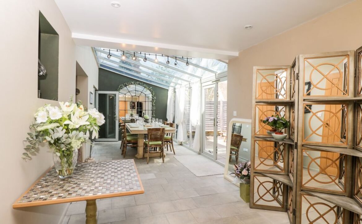 A large, sun-filled dining and sitting room runs across the entire length of the cottage, offering somewhere to dine with friends or family, or to simply seek a few moments of rest and relaxation.