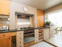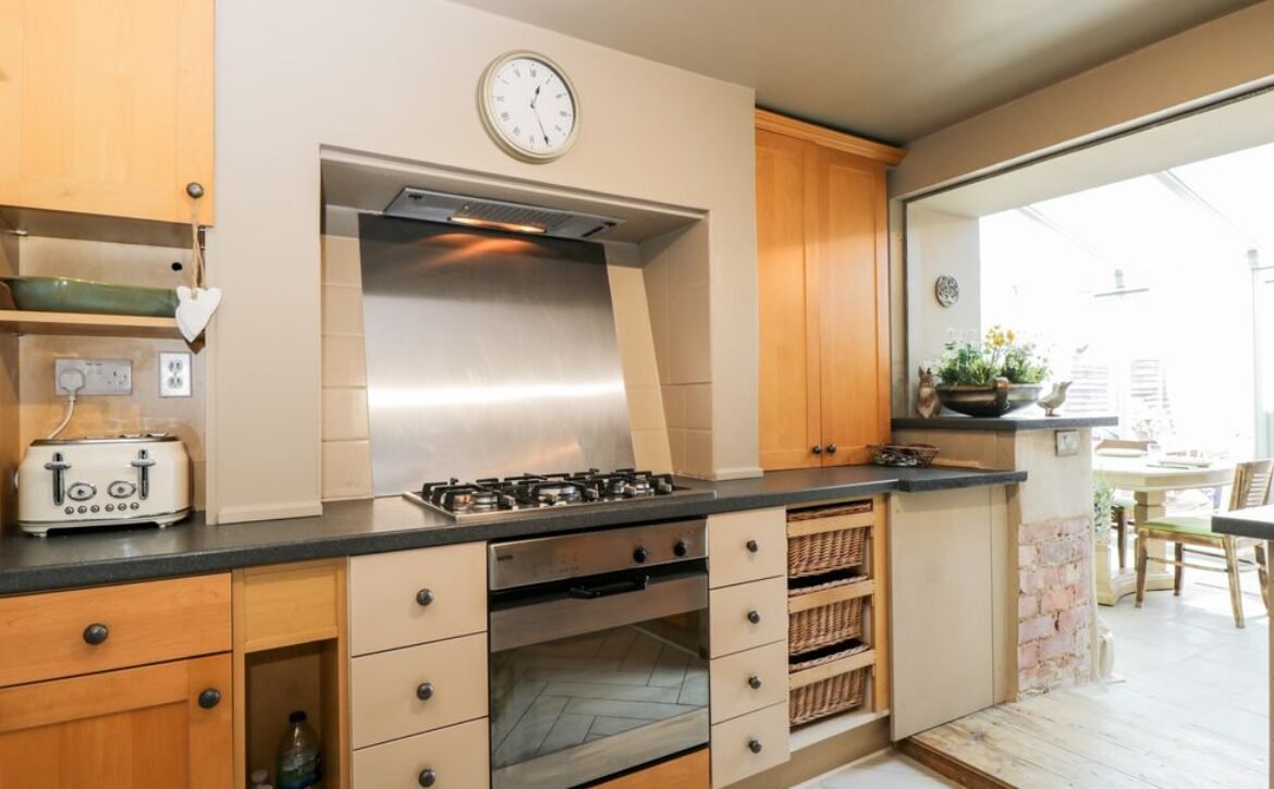 - Electric oven and gas hob, microwave, American style fridge/freezer, slow cooker, dishwasher