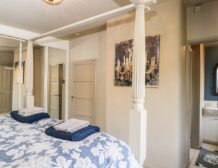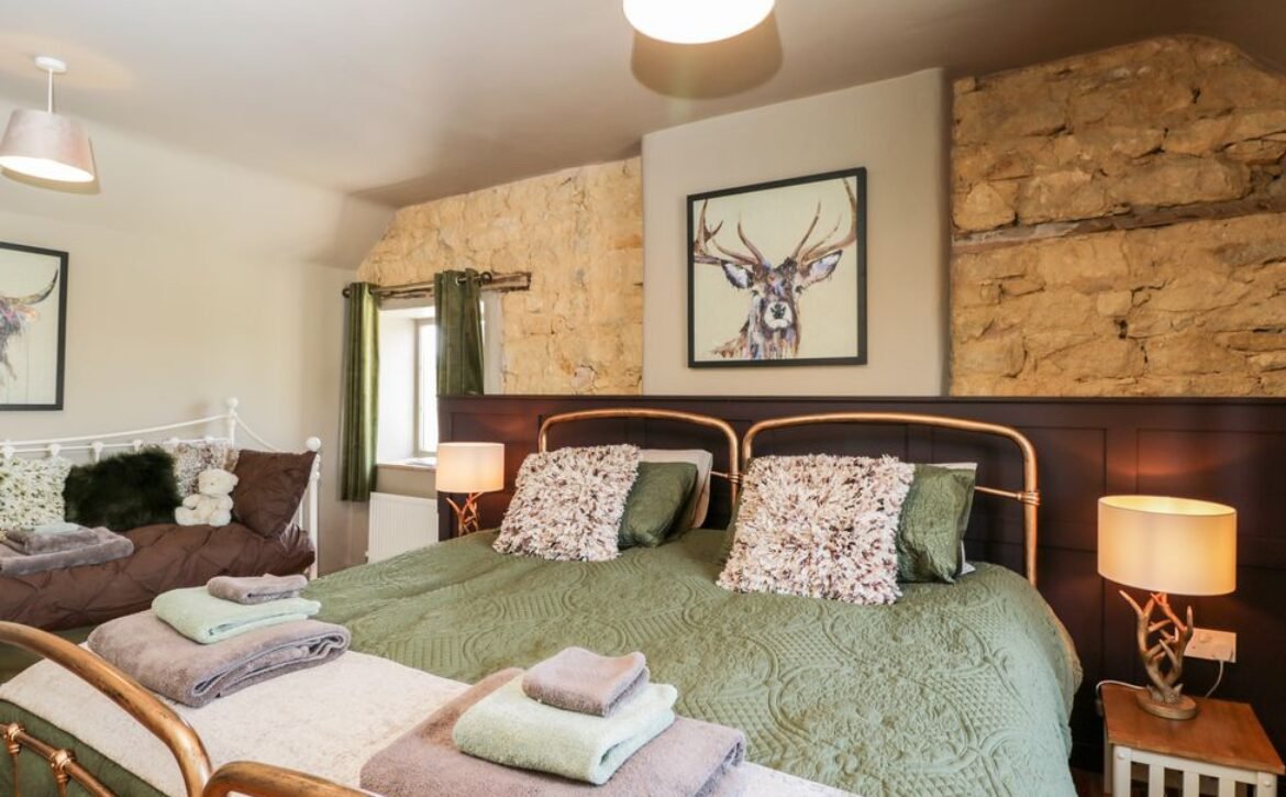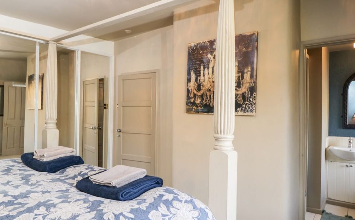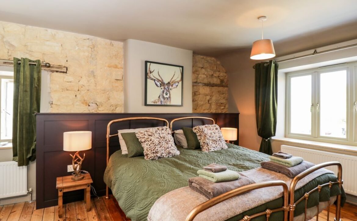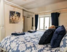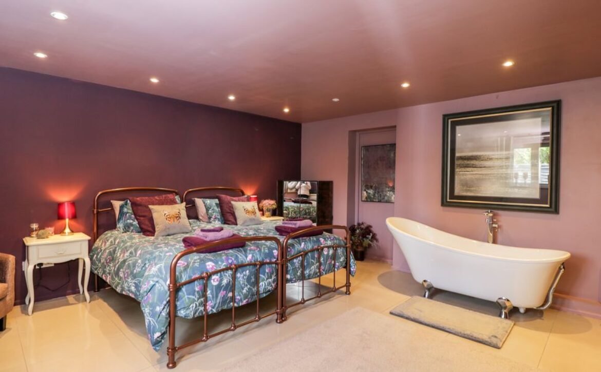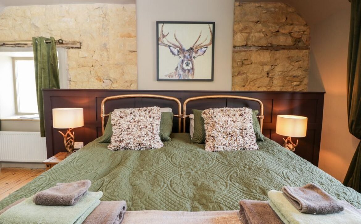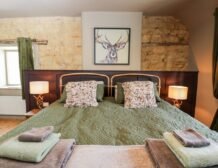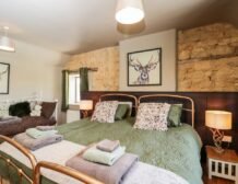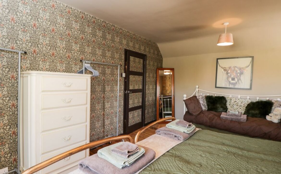 - Three bedrooms: 1 x ground-floor super-king-size (zip/link, can be twins on request) with freestanding slipper bath and handheld shower, 1 x super-king-size with en-suite shower, basin and WC, 1 x super-king-size (zip/link, can be twins on request)