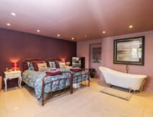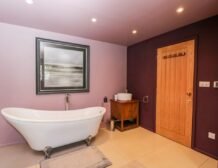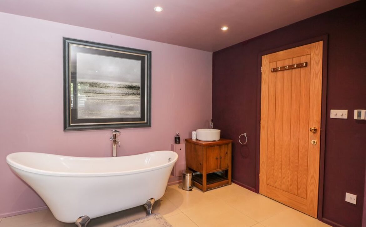 The ground floor accommodation also provides you with a cloakroom, a beautifully equipped kitchen complete with all mod cons, as well as the most recent addition, a luxurious ground-floor super-king-size bedroom with freestanding slipper bath.