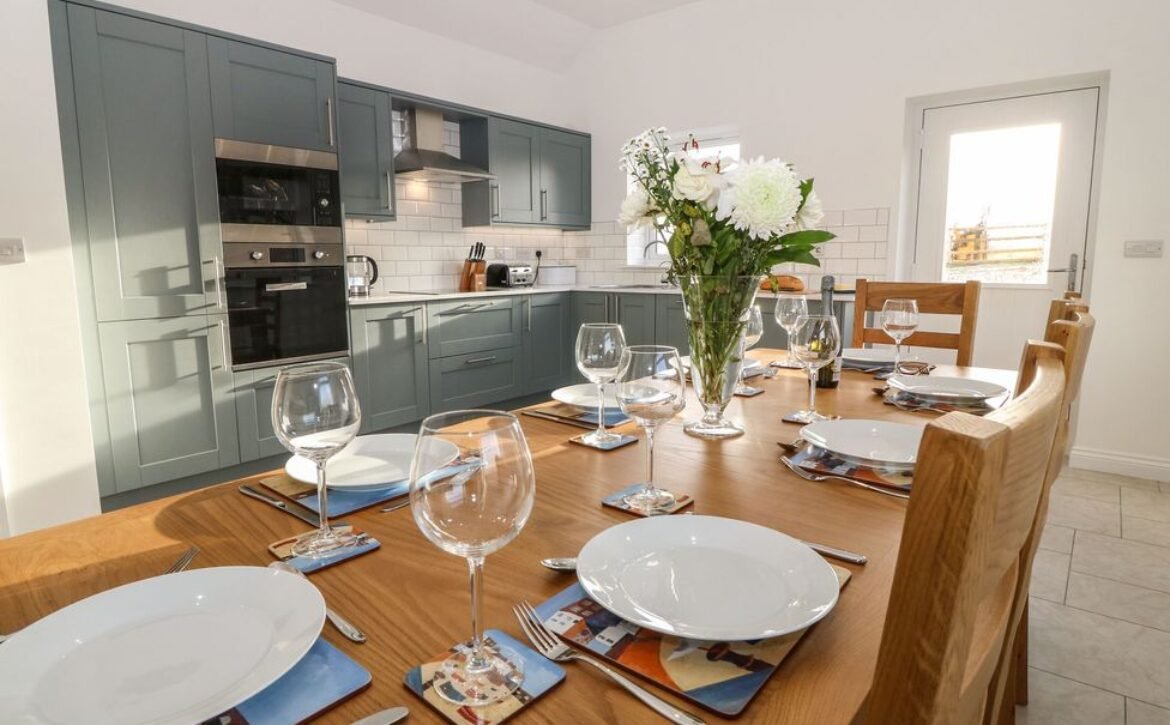 Head inside to find a fully-equipped kitchen, where the chef of the group can cook up a storm, ready to savour meals around the dining table for eight over celebratory bottles of fizz.