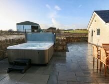 The Moelfre Barn Conversions consists of two well-appointed barn conversions resting on the outskirts of Moelfre, Isle of Anglesey. This collection offers a beautiful family-friendly base from which couples, friends and families can explore the very best of Anglesey, benefitting from a contemporary interior with fully-equipped kitchen/diners, inviting sitting areas with crackling woodburning stoves and Smart TVs, sleek shower rooms, tastefully decorated bedrooms, private patios with furniture, hot tub and exceptional far-reaching views out towards Red Wharf Bay and the Great Orme, as well as ample off road-parking. The village offers all the amenities you could need during your stay, including the welcoming Kinmel Arms, Ann’s Pantry, Coastal Café, an ice cream parlour, a well-stocked convenience store, and a gorgeous beach. Continue onto Benllech, where you’ll find the popular eateries of Pebbles Bistro, The Bay Café, The Breeze Hill, Beachcomber Bar & Grill, and the beautiful Traeth Benllech. Further afield, you can spend a day in the historic town of Beaumaris, where you can tour the fascinating sites of Beaumaris Castle, Beaumaris Gaol and Court, and the Beaumaris Courthouse Museum, sample delights at The Midland Tapas and Wine Bar, wander along the seafront, or embark on a sea safari to the incredible Puffin Island. An escape to Anglesey doesn’t get much better than with a stay at Moelfre Barn Conversions.